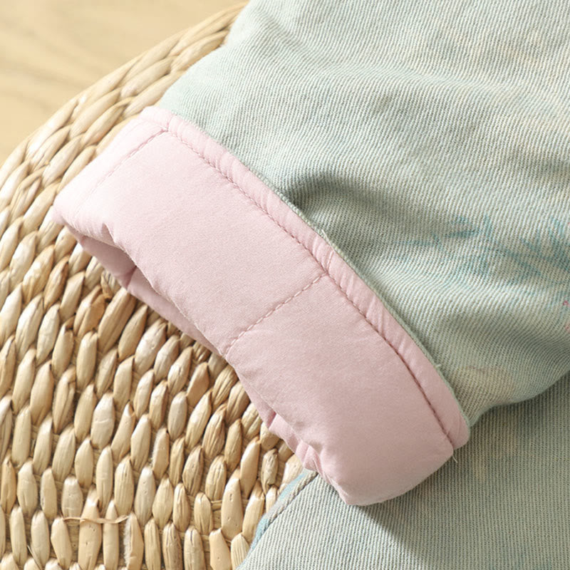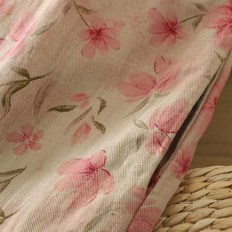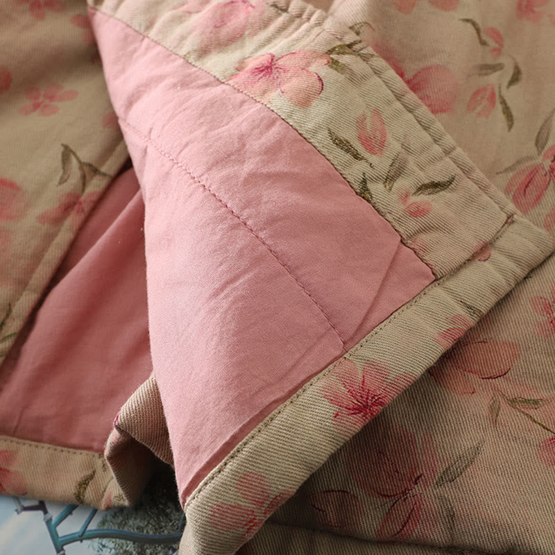 Abrigo de mujer de manga larga y cuello redondo con estampado de flores y botones de rana con Buddha Stones