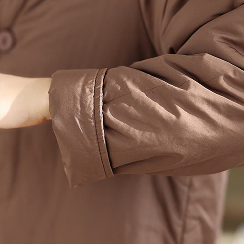 Abrigo térmico de algodón para mujer, de manga larga, con botones y cuello en V y bolsillos , de Buddha Stones, para invierno - image 11