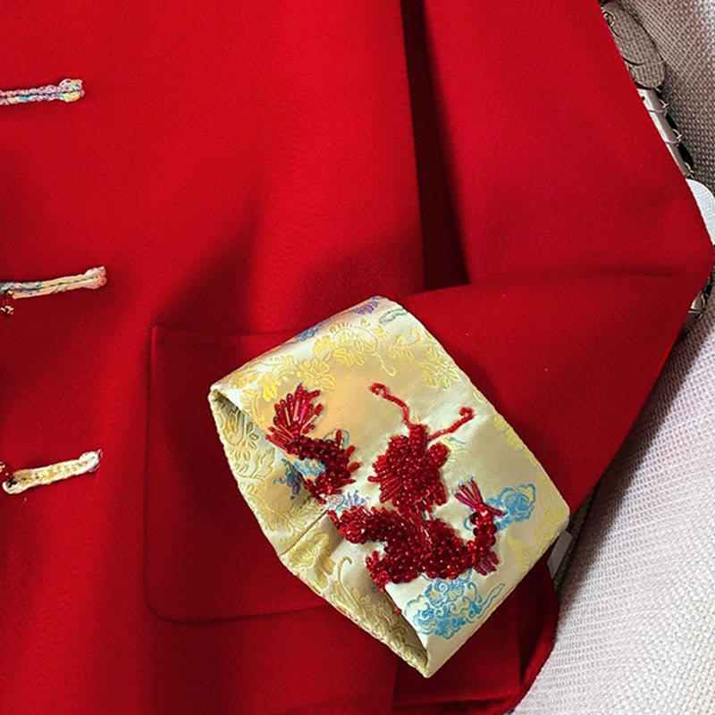 Chaqueta de algodón de manga larga para mujer con diseño de botones bordados de invierno y Buddha Stones, con bolsillos - Carmesí - US6,UK/AU10,EU38 (XL) - image 0