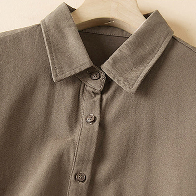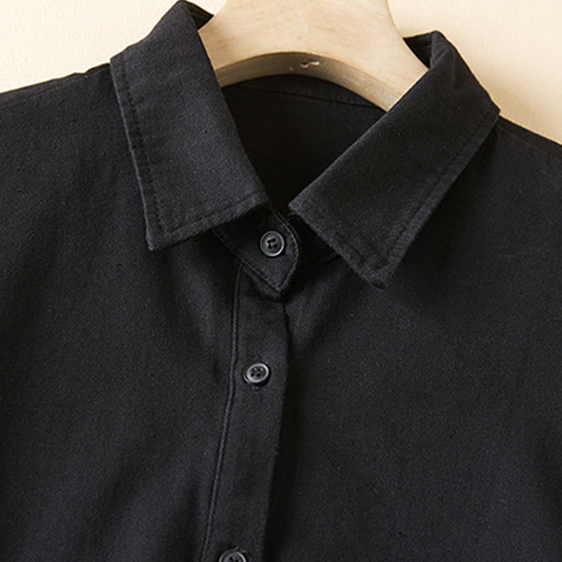 Chaqueta de lino y algodón de manga larga para mujer con solapa y bolsillos, diseño irregular de Buddha Stones Fall - image 17