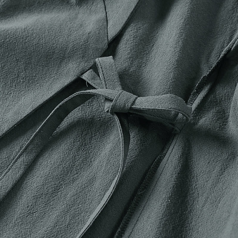Chaqueta kimono de algodón y lino para hombre, estilo chino, con botones de rana y Buddha Stones, de media manga - image 8