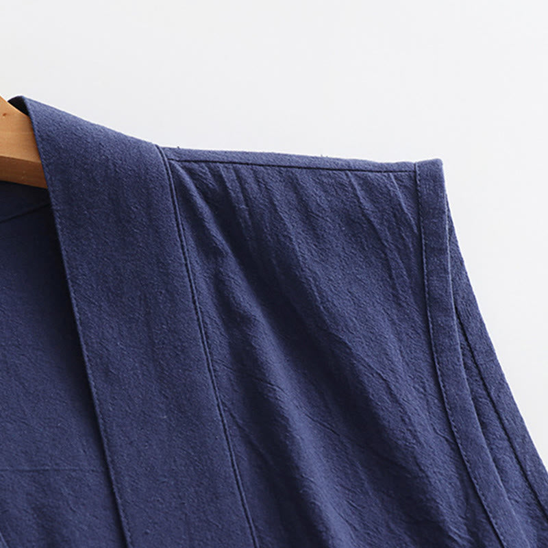 Una túnica taoísta es una prenda tradicional de la cultura taoísta. Presenta un diseño holgado y fluido con mangas anchas y un frente superpuesto, que simboliza la simplicidad, la armonía y la tranquilidad. Hecha con telas cómodas como el algodón o el lino, se usa comúnmente para la meditación, el taichí, el qigong, las ceremonias o la práctica espiritual diaria. Su estilo minimalista refleja la filosofía taoísta de equilibrio y vida natural.