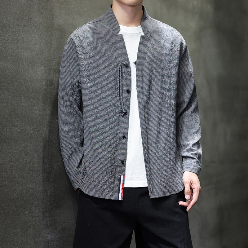 Camisa de manga larga con botones para hombre, de color liso, con estampado de Buddha Stones y caída