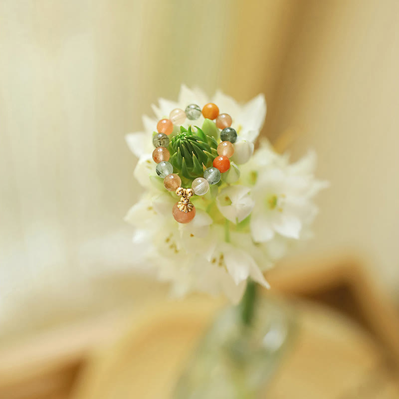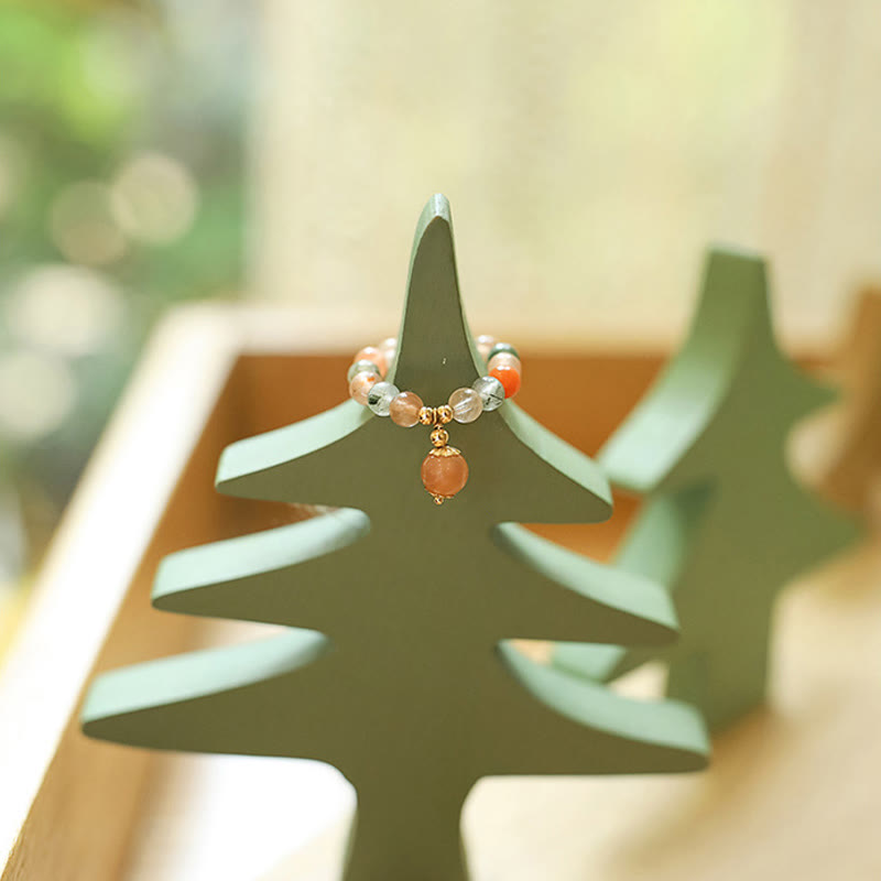 • Tamaño de las cuentas: Cristal Fulu Shou: 4,5 mm, Piedra lunar melocotón: 6 mm, Cuentas de cobre: ​​2,5 mm, Espaciador: 4 mm