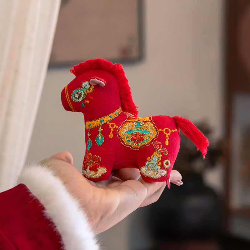 Adorno colgante con bordado de hilo rojo del Año del Caballo con Buddha Stones - Caballo rojo (11,1 x 9,7 cm) - image 0