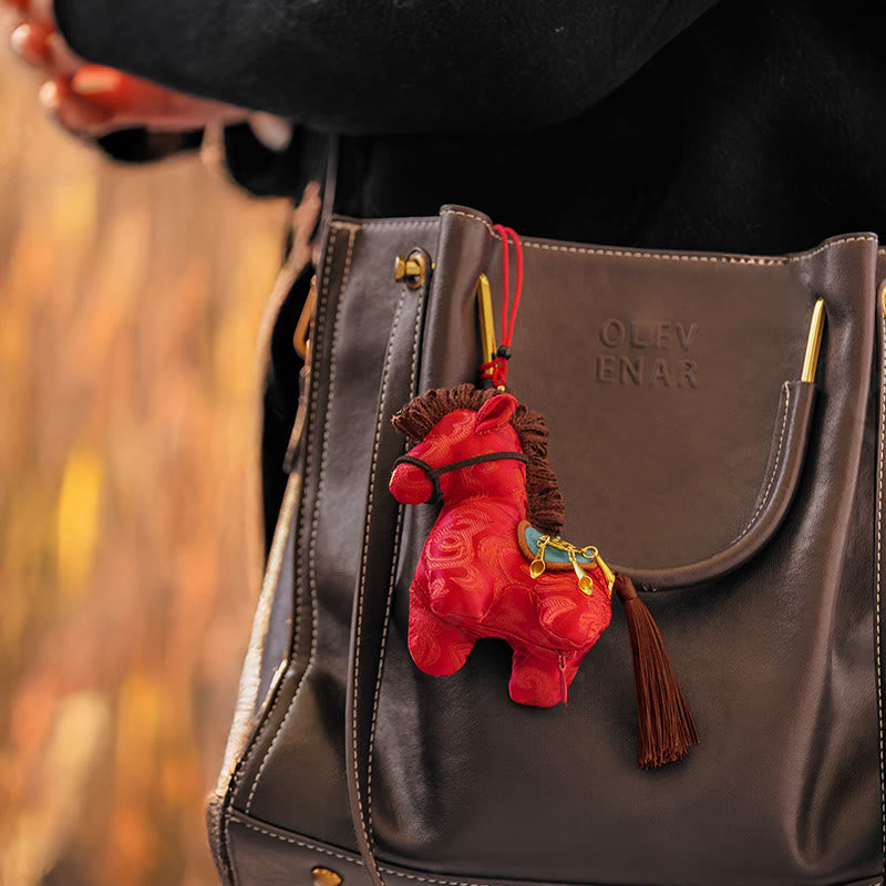 Decoración colgante con Buddha Stones, Año del Caballo, bordado con hilo rojo, Libertad - Caballo rojo (10,9-11,7 x 7,4 cm) - image 0