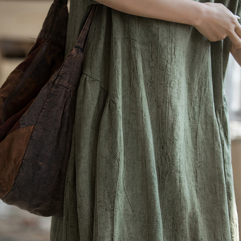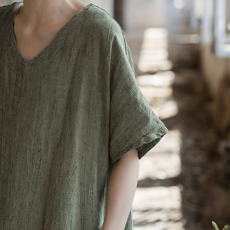 Vestido midi con cuello en V y teñido anudado hecho a mano con Buddha Stones Vestido de manga corta de lino