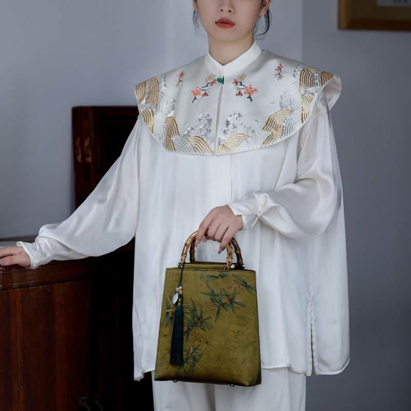 - Material: poliéster, algodón, mango de bambú, borlas, accesorios de jade.