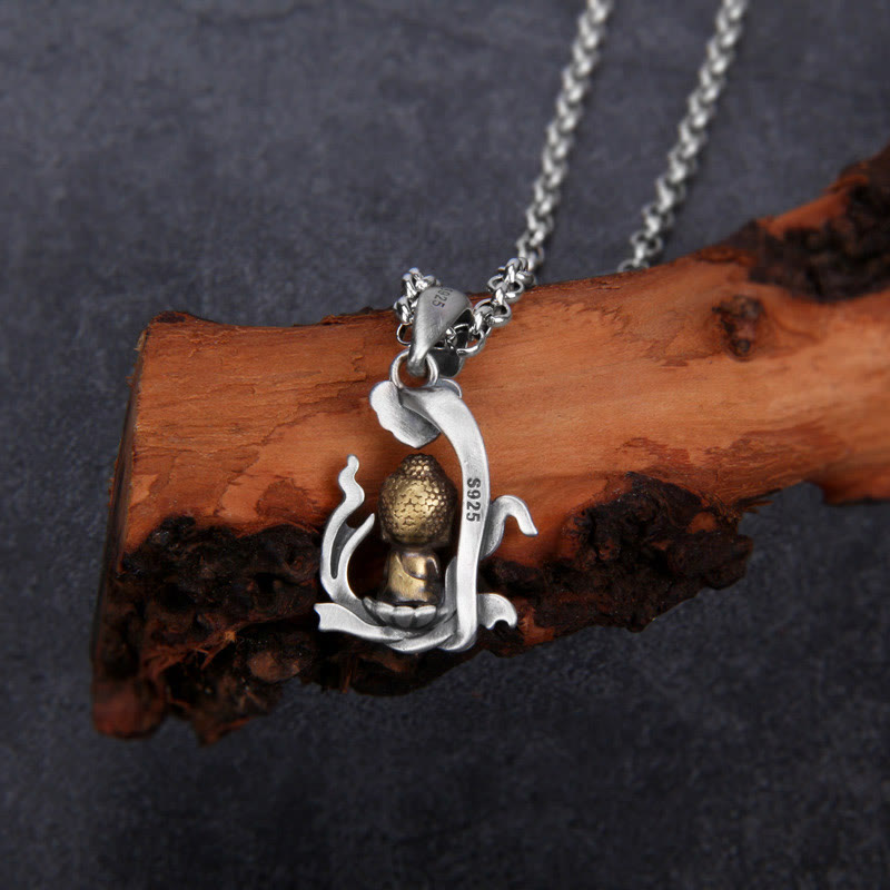 Collar con colgante de plata de ley 925 con diseño de Buda Zen y Ruyi con Buddha Stones - Símbolo de Buda (Compasión♥Serenidad) - image 1