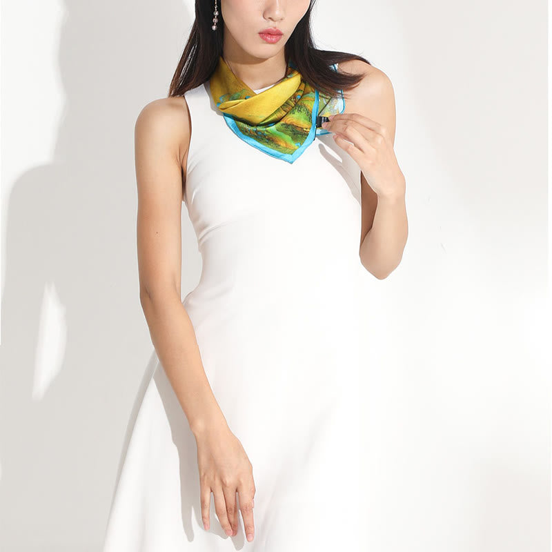 Buddha Stones Un panorama de ríos y montañas Bufanda de seda de morera 100% Mantón de seda de grado 6A de primera calidad