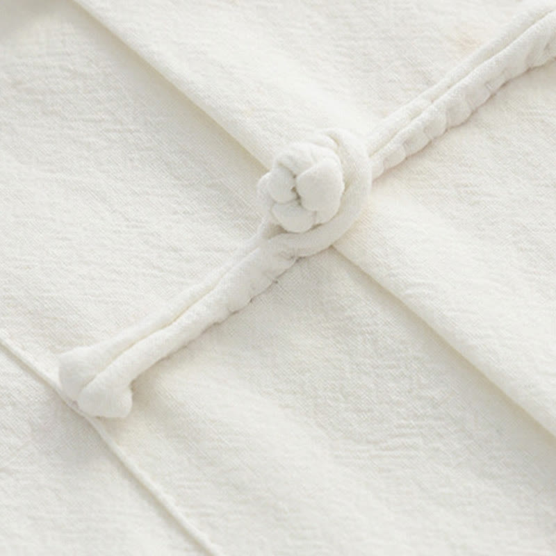 Buddha Stones Camisa de Manga Corta de Estilo Tang con Botón de Rana China para Hombre, Ropa de Algodón y Lino con Bolsillos - Blanco antiguo - US/UK/AU44, EU54 (4XL) - image 12