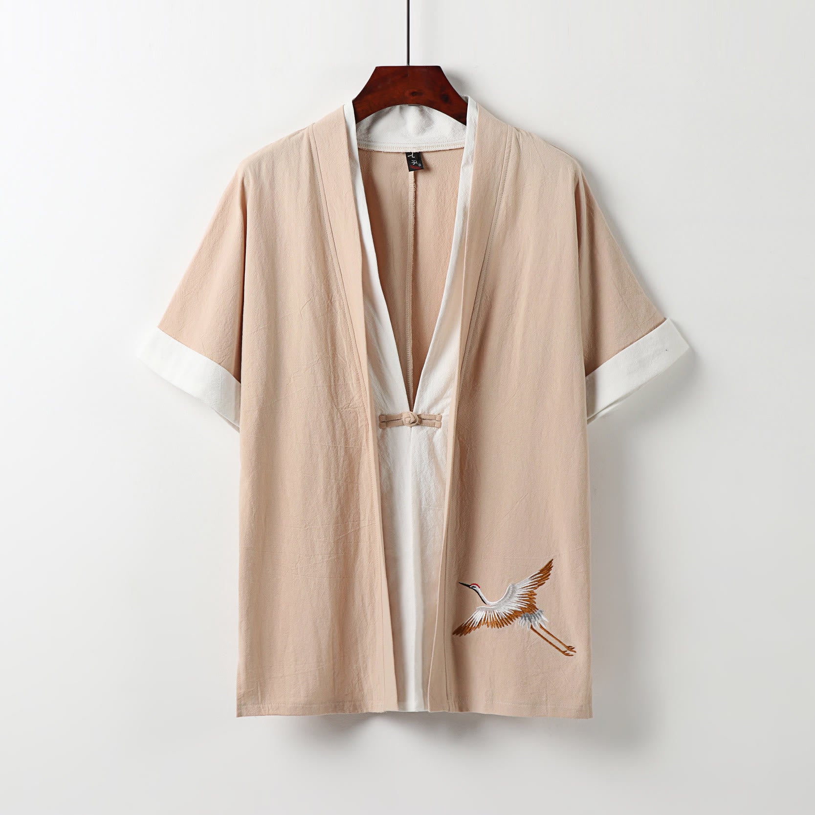 Camisa cómoda de algodón Hanfu con bordado de Buddha Stones de dos piezas para hombre, de media manga y falso cárdigan - PeachPuff - US/UK/AU54, EU64 (9XL) - image 12