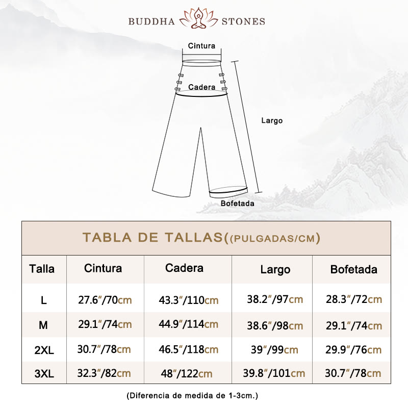 Pantalones casuales de algodón con botones de rana, cintura alta, pierna ancha y bolsillos de Buddha Stones