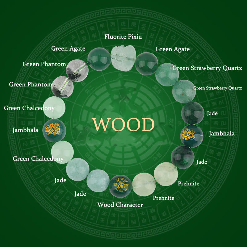 Pulsera de la riqueza Pixiu de ágata de cristal con cinco elementos y Buddha Stones - Madera (Circunferencia de la muñeca: 14-16 cm) - 8 mm - image 7