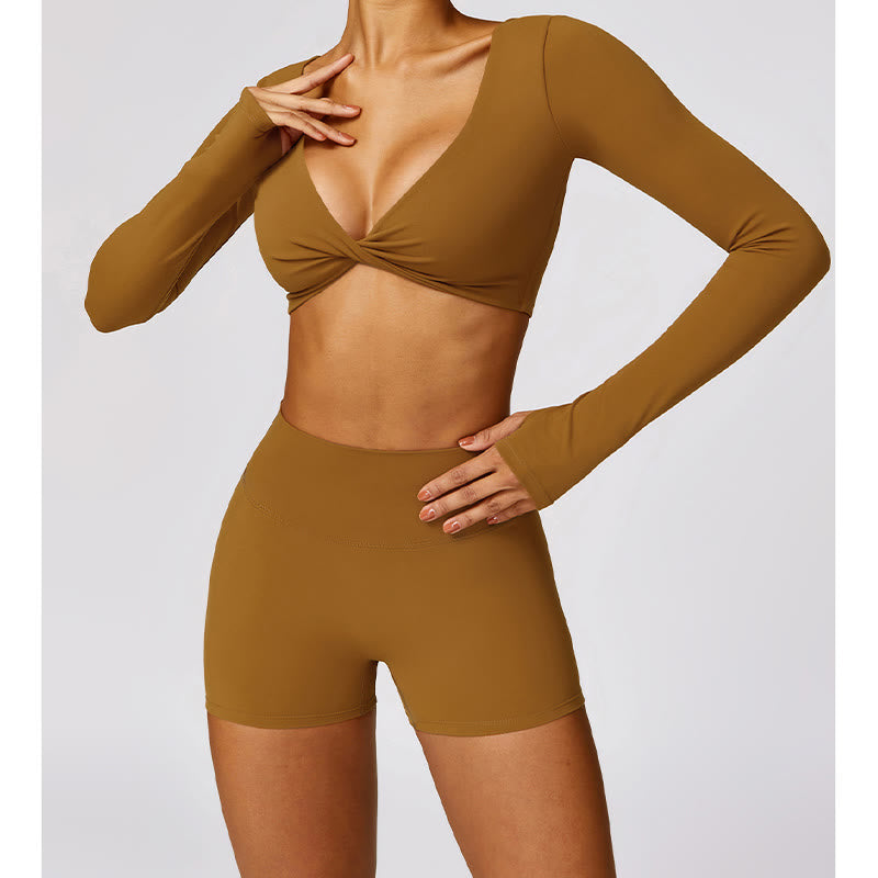 Buddha Stones Gimnasio Deportes Yoga Sin Espalda Bra Crop Tank Top Pantalones Cortos Transpirables - Marrón - Bermudas - US8-10, UK/AU12-14, EU40-42 (XL) - image 52