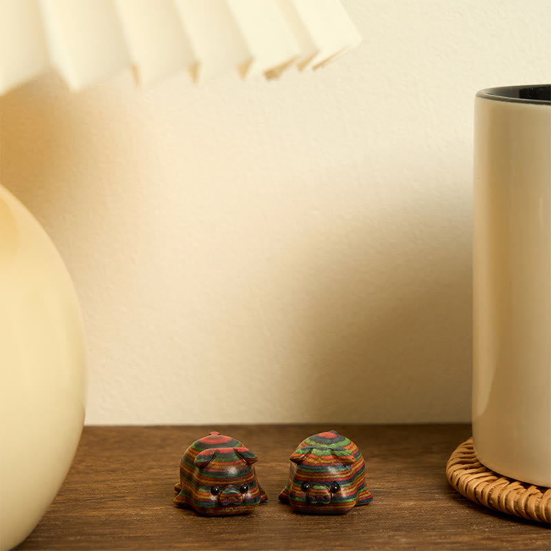 2 mini Buddha Stones talladas con forma de cerdo de eucalipto arcoíris, decoración positiva