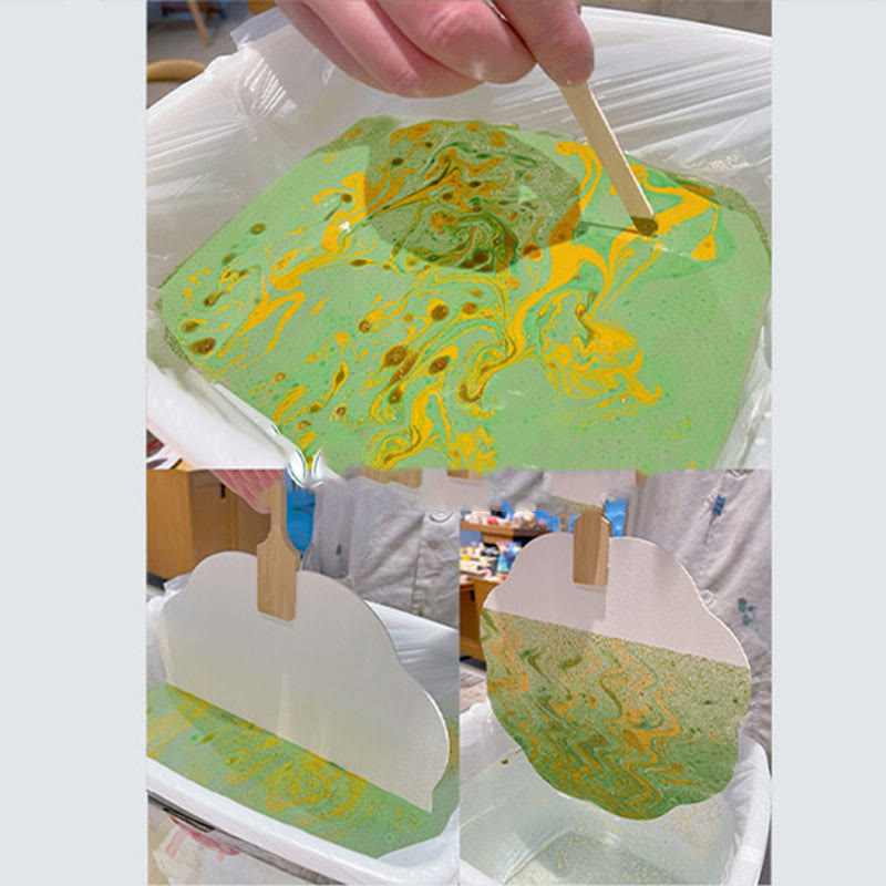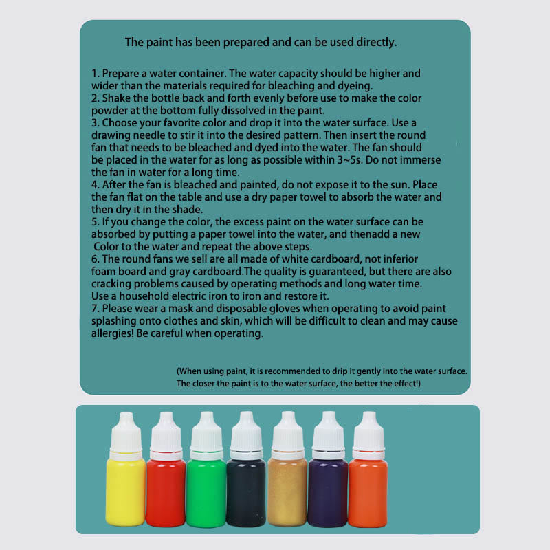 (Al usar pintura, se recomienda gotearla suavemente sobre la superficie del agua. ¡Cuanto más cerca esté la pintura de la superficie del agua, mejor será el efecto!