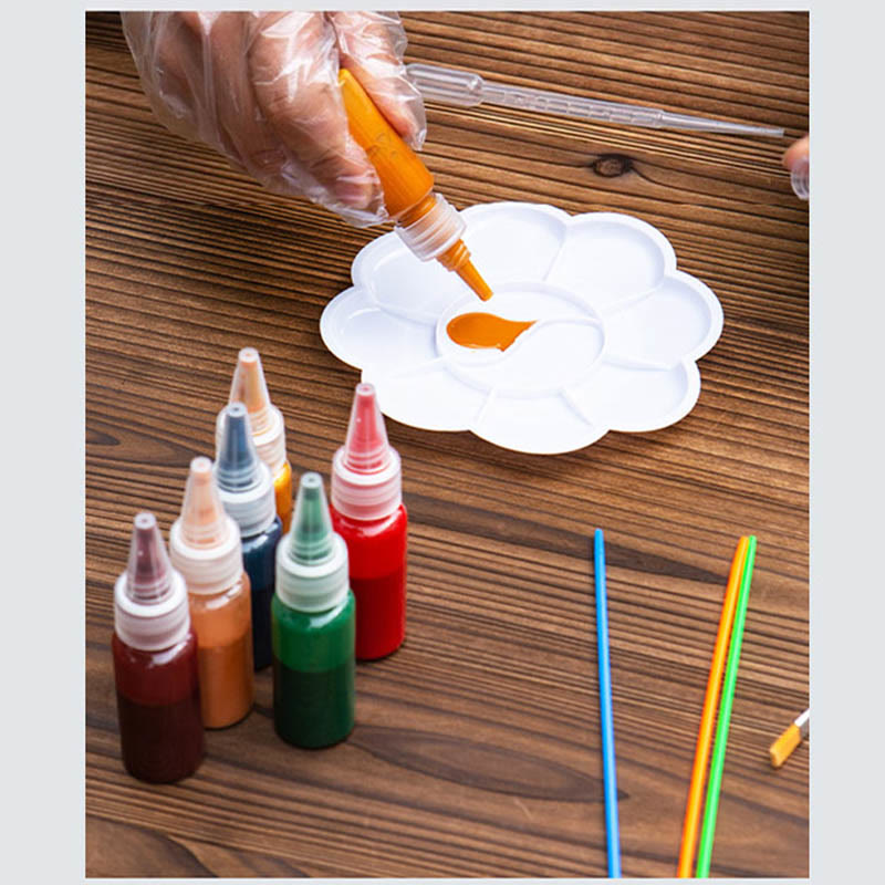 Juego de 44 piezas para blanquear pintura : paquete mixto de 10 abanicos (estilos aleatorios), palitos para mezclar * 5 (colores aleatorios), pintura laca de 6 colores, cinta adhesiva * 3, guantes desechables * 10, clips para colgar * 10 (colores aleatorios);