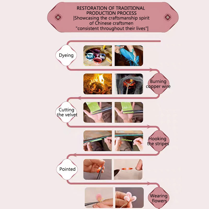 • Preservación del patrimonio cultural : el uso de la artesanía tradicional con flores de terciopelo resalta la importancia de preservar el patrimonio cultural y las habilidades artesanales. Esto muestra la belleza de la artesanía hecha a mano, en particular las intrincadas técnicas transmitidas de generación en generación en regiones como Yangzhou.