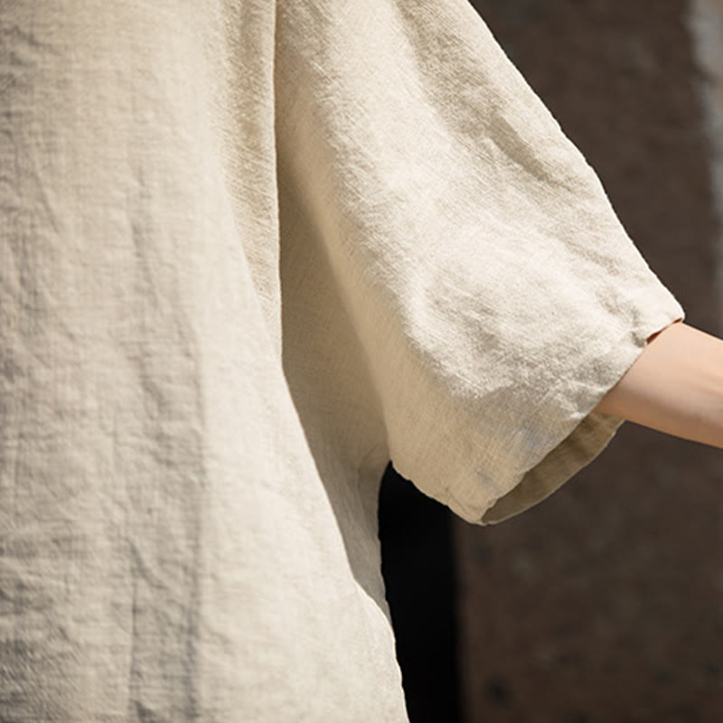 La camiseta de lino y algodón de media manga ofrece una cómoda combinación de ramio y algodón para un ajuste transpirable. Con cuello redondo y cierre de un solo botón, esta camiseta de media manga encarna la simplicidad y la comodidad . Las fibras naturales garantizan durabilidad y suavidad, lo que la convierte en una opción ideal para la relajación y la tranquilidad , perfecta para momentos de atención plena. 💕