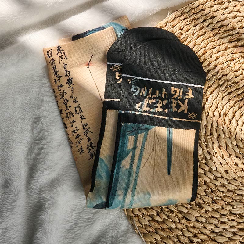 • Diseño artístico : Inspirados en la pintura paisajística tradicional china, estos calcetines presentan elegantes pinceladas de tinta que aportan un toque de arte cultural a tu día a día. Un elegante loto pintado con tinta simboliza pureza y resiliencia, fusionando belleza y significado en cada paso.