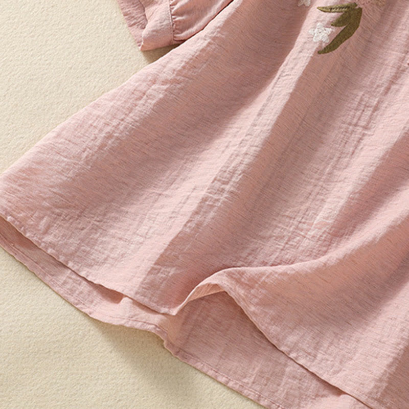 Camisa de algodón con cuello en V para mujer con bordado de flores, hojas y Buddha Stones - Rosa - US14,UK/AU18,EU46 (2XL) - image 1