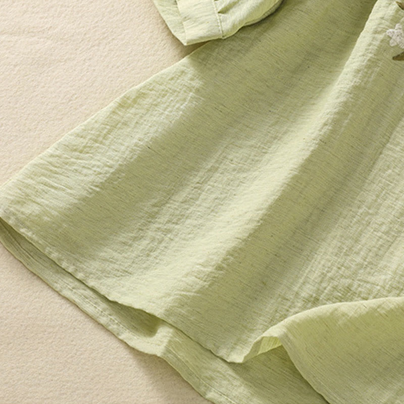 Camisa de algodón con cuello en V para mujer con bordado de flores, hojas y Buddha Stones - Verde claro - US14,UK/AU18,EU46 (2XL) - image 11