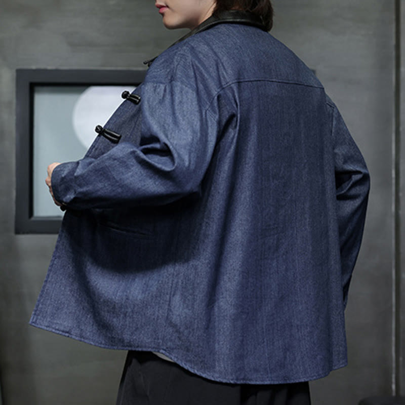 Camisa de algodón de manga larga con botones de rana y bolsillos para hombre de Buddha Stones