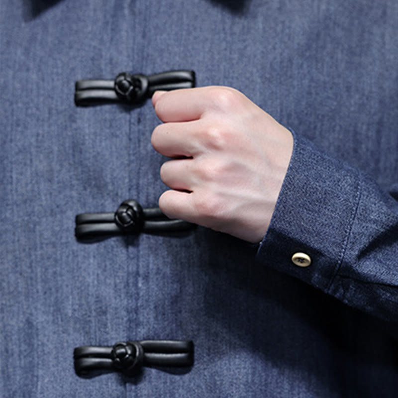 Camisa de algodón de manga larga con botones de rana y bolsillos para hombre de Buddha Stones - image 17