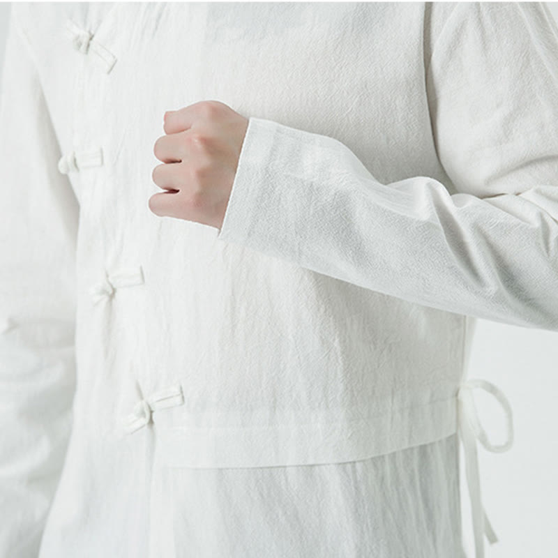 Camisa de algodón de manga larga para hombre con botones de rana y diseño vintage de Buddha Stones - Blanco - US/UK/AU46, EU56 (5XL) - image 1