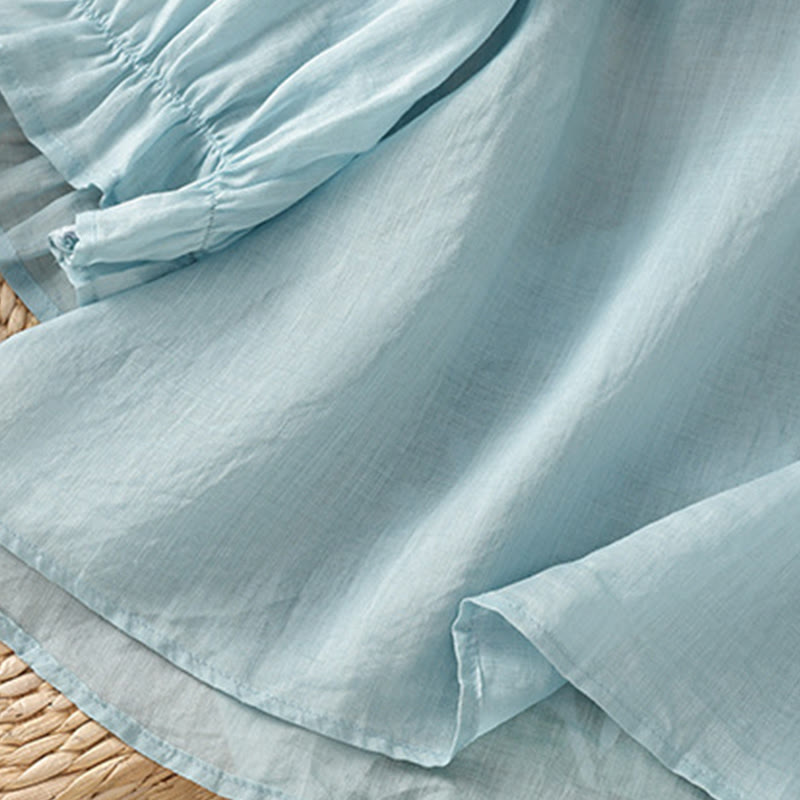 Camisa de algodón para mujer con cuello redondo, manga tres cuartos y botones bordados con flores y Buddha Stones - image 11