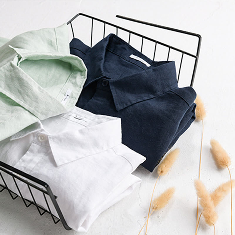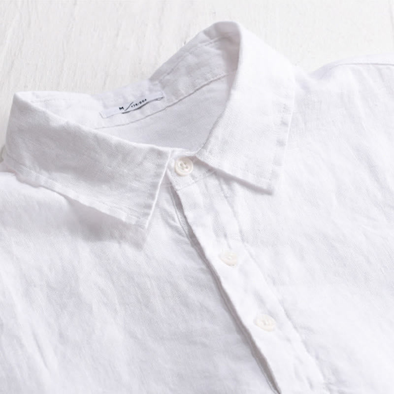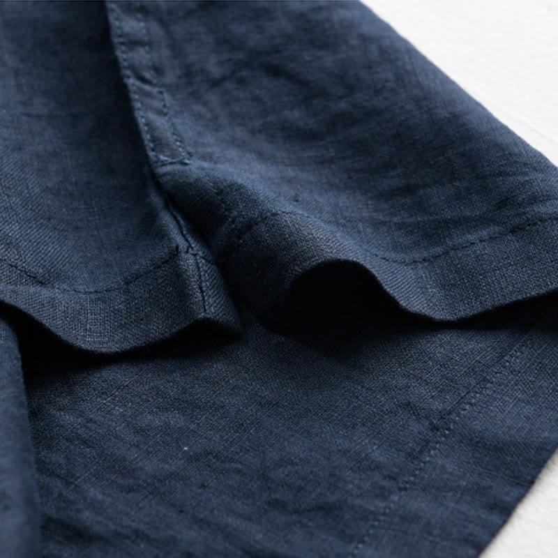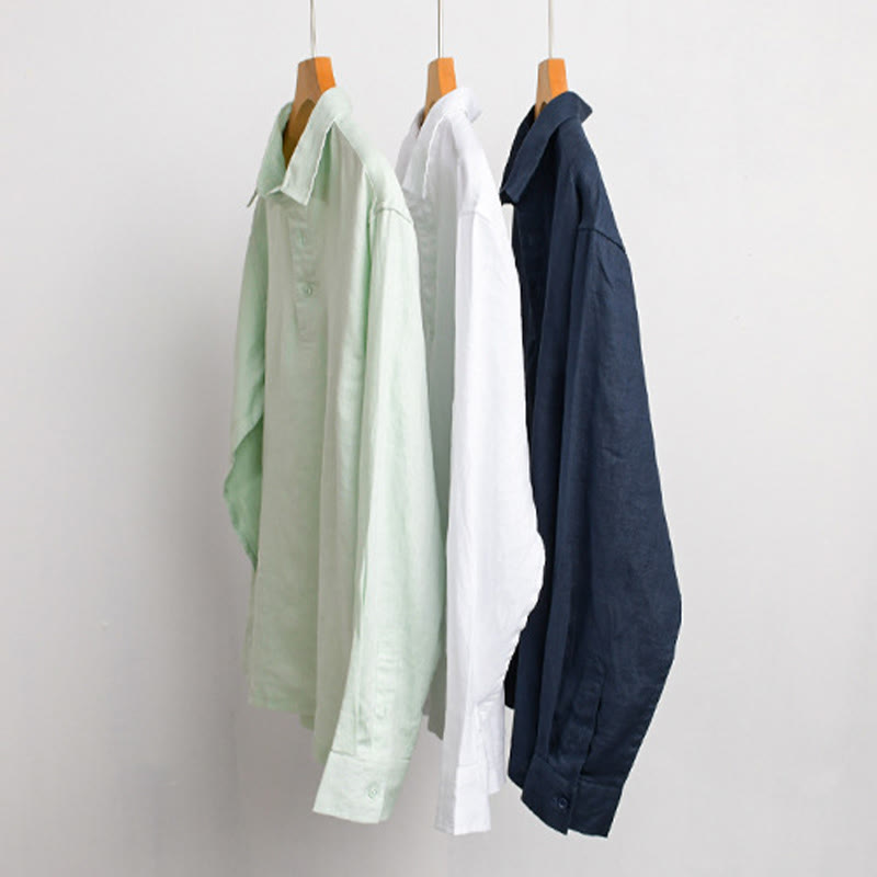 Camisa de lino puro de manga larga con botones y solapa de color liso para hombre de Buddha Stones