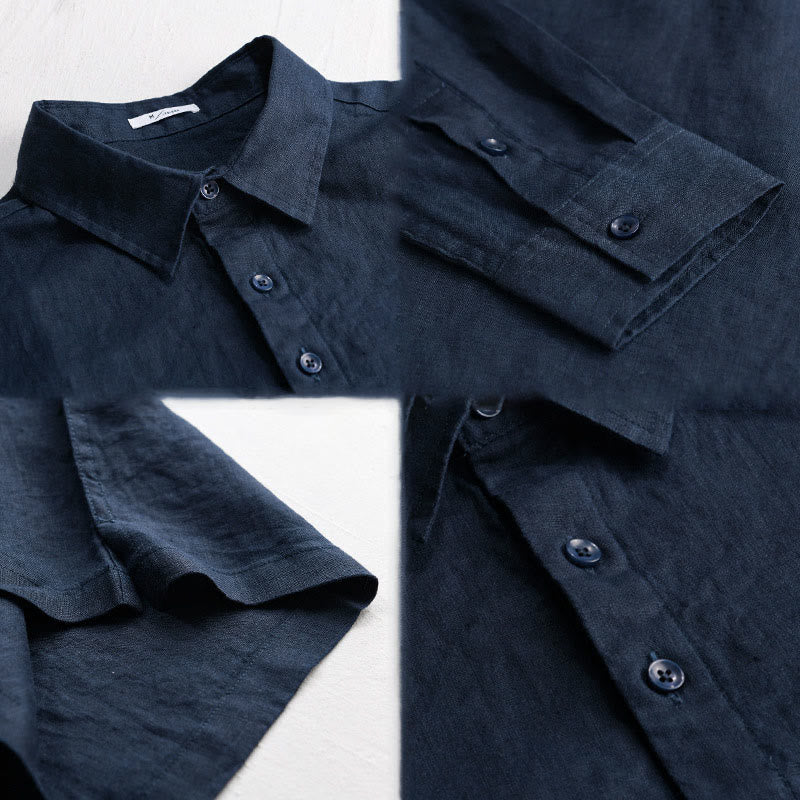Camisa de lino puro de manga larga con botones y solapa de color liso para hombre de Buddha Stones - Azul medianoche - US/UK/AU42, EU52 (3XL) - image 0