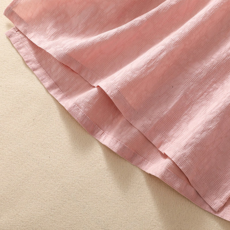 Camisa de lino y algodón de manga corta con botones de rana y bordado de flor de ciruelo con Buddha Stones - MistyRose - 2XL(apto para US8-10; UK/AU12-14; UE 40-42) - image 0
