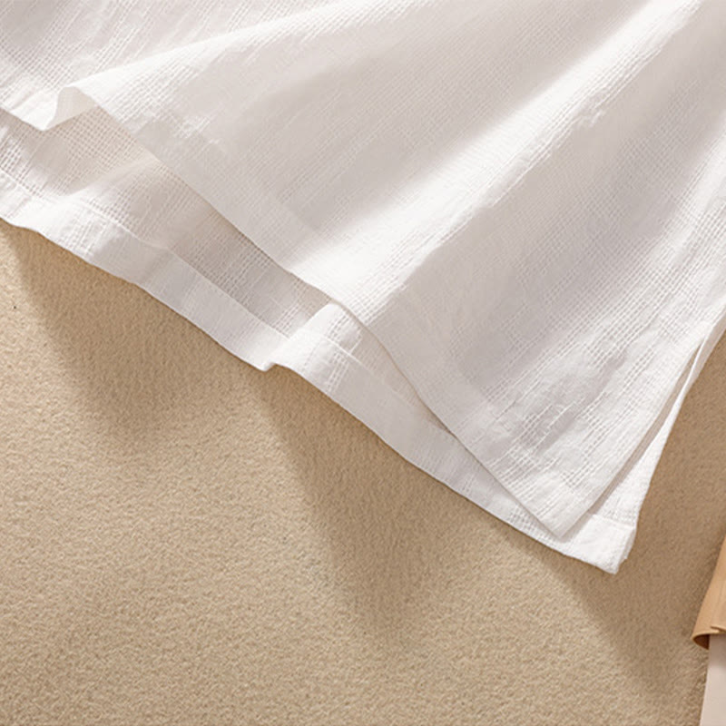 Camisa de lino y algodón de manga corta con botones de rana y bordado de flor de ciruelo con Buddha Stones - Blanco - 2XL(apto para US8-10; UK/AU12-14; UE 40-42) - image 24