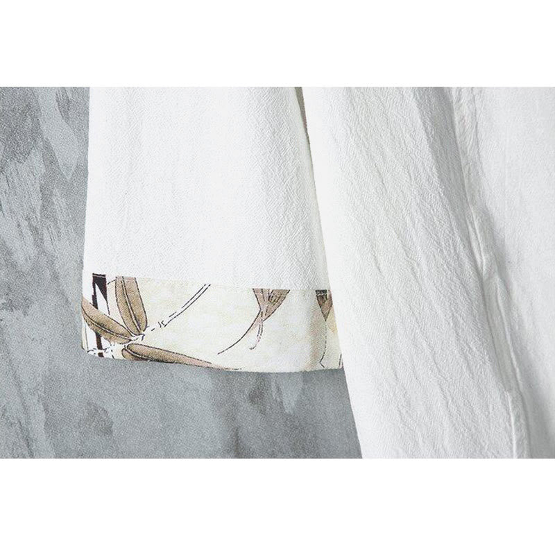 Camisa de lino y algodón de media manga para hombre, con estampado de rana china y botones de verano, con diseño de Buddha Stones - Blanco - US/UK/AU46, EU56 (5XL) - image 1
