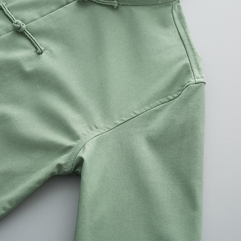 Camisa de lino y algodón para hombre, de manga larga, con botones de rana y bordado de ondas sólidas y Buddha Stones - Verde claro - US/UK/AU44, EU54 (4XL) - image 0