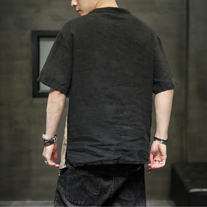 Camisa de lino y algodón para hombre, de media manga, con botones y bolsillo, estilo vintage Buddha Stones