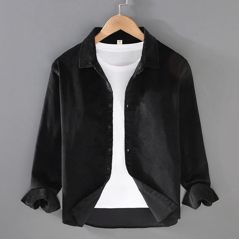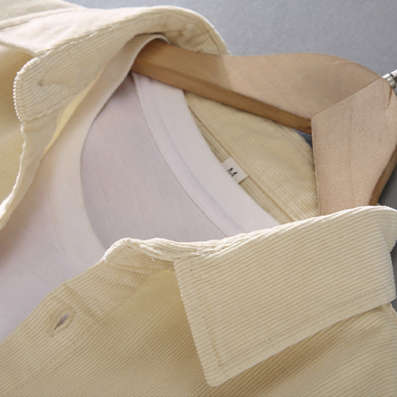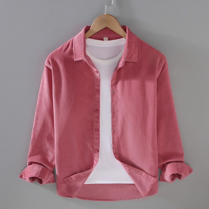 Camisa de pana de algodón puro de manga larga con botones de color liso para hombre de Buddha Stones