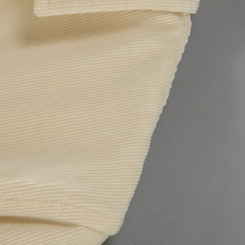 Camisa de pana de algodón puro de manga larga con botones de color liso para hombre de Buddha Stones - Beige - US/UK/AU44, EU54 (4XL) - image 4