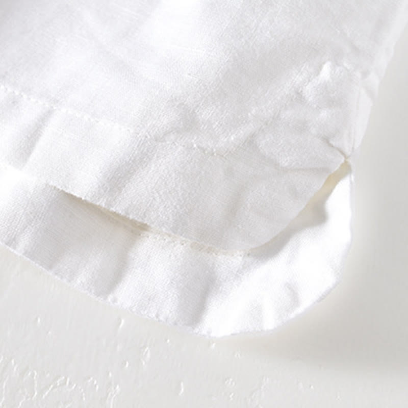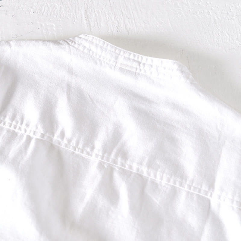 Camisa de verano para hombre con cuello alto, manga corta, algodón y lino, con medio botón, de Buddha Stones - Blanco - US/UK/AU42, EU52 (3XL) - image 6