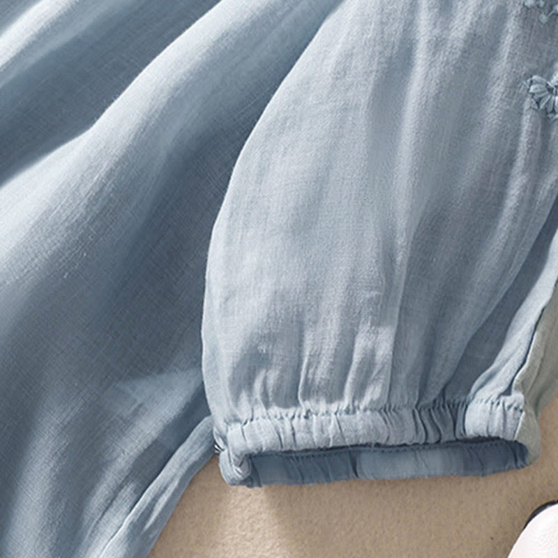 Camisa informal de manga corta abullonada con diseño floral bordado y botones lisos de Buddha Stones para mujer - image 11
