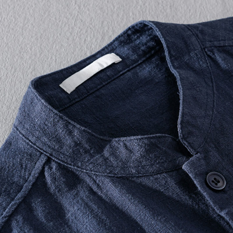 Camisas de hombre de algodón ramio con botones, manga larga y bolsillos, de Buddha Stones - image 15