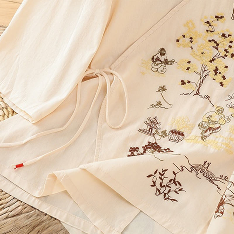 Camiseta de lino y algodón con bordado retro de Buddha Stones , con cordones, manga tres cuartos para mujer - image 20