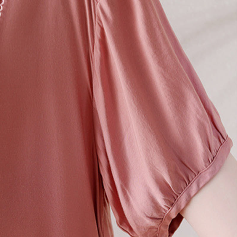 Camiseta de manga corta con diseño de botones rosas y cuello en V de Buddha Stones - image 10