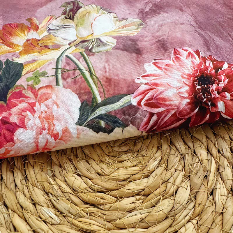 Camiseta de poliéster de media manga con cuello redondo y estampado informal de Buddha Stones, pétalos de dalia y peonía para mujer
