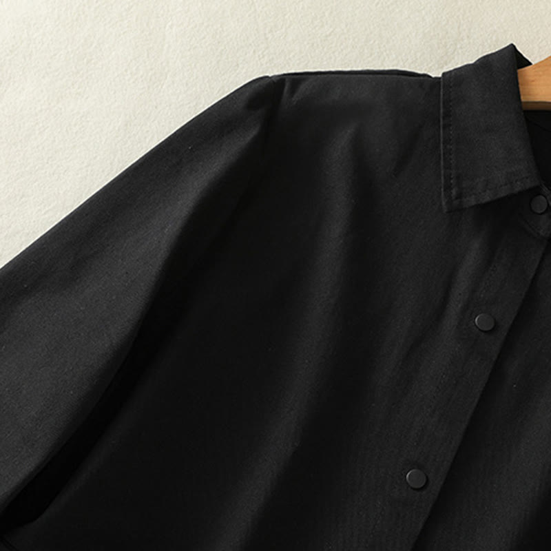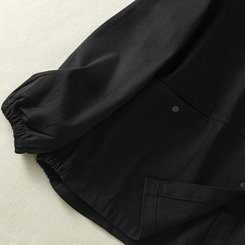 Chaqueta de algodón con cuello alto y diseño de botones lisos de Buddha Stones para mujer - Negro - US14,UK/AU18,EU46 (2XL) - image 9