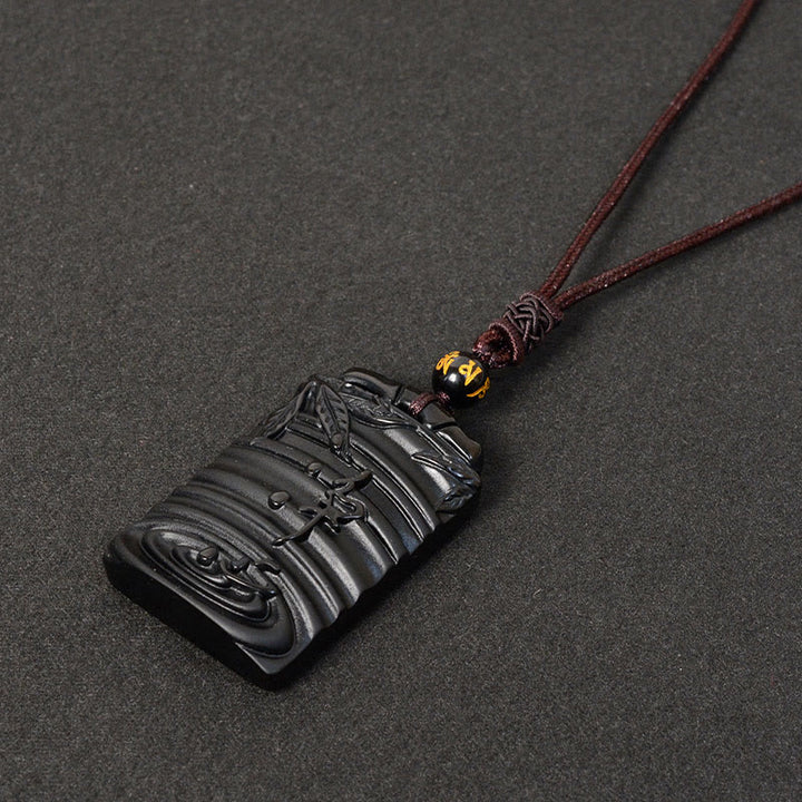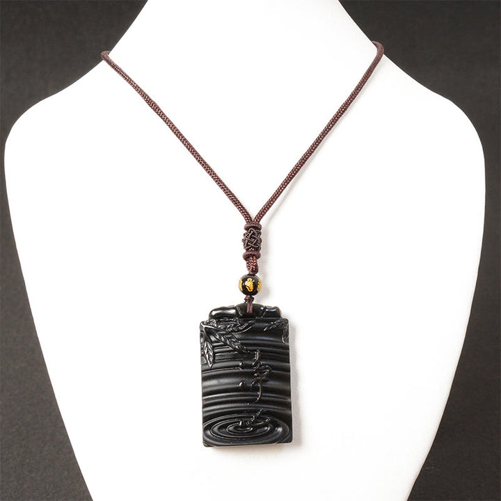 Colgante de collar con Buddha Stones y obsidiana negra natural de bambú