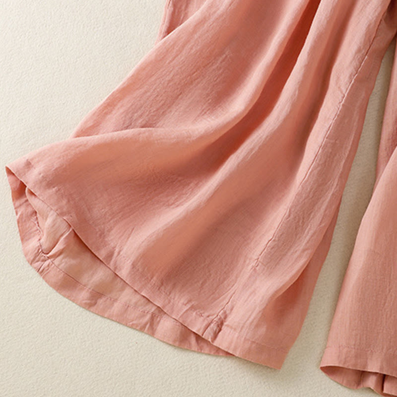 Pantalones anchos de algodón con cordón y bordado Buddha Stones Commute para mujer con bolsillos