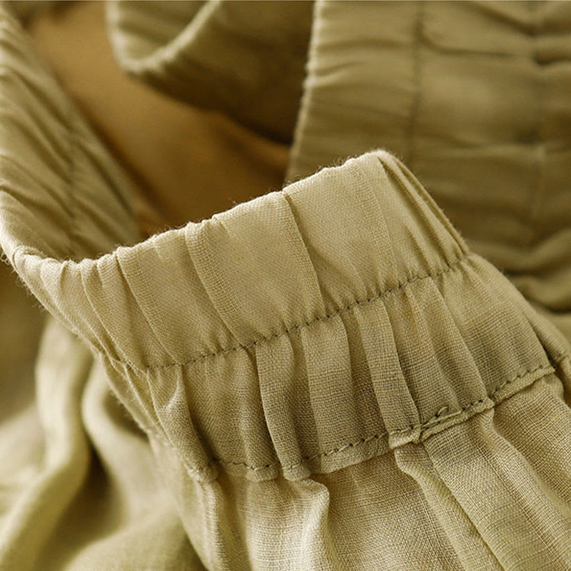 Pantalones anchos de lino y algodón con bordado floral para mujer, cintura elástica y bolsillos, estilo casual, con Buddha Stones - image 31